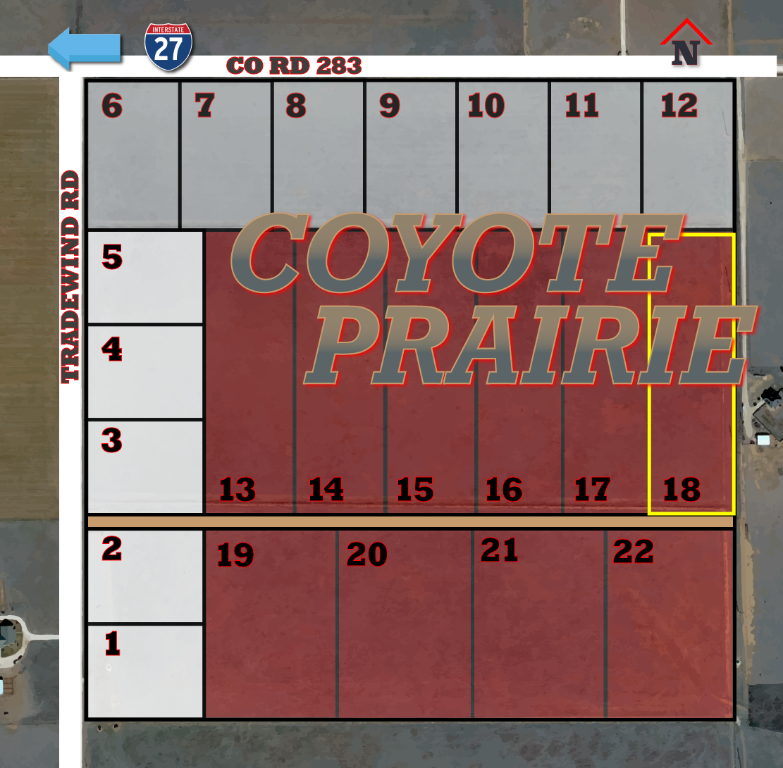 Coyote Prairie is located 1 mile East of I-27, down County Road 283, just far enough from the Interstate to avoid the traffic, but close enough for easy access to Canyon and Happy, or Amarillo along I-27 or Washington Street.
